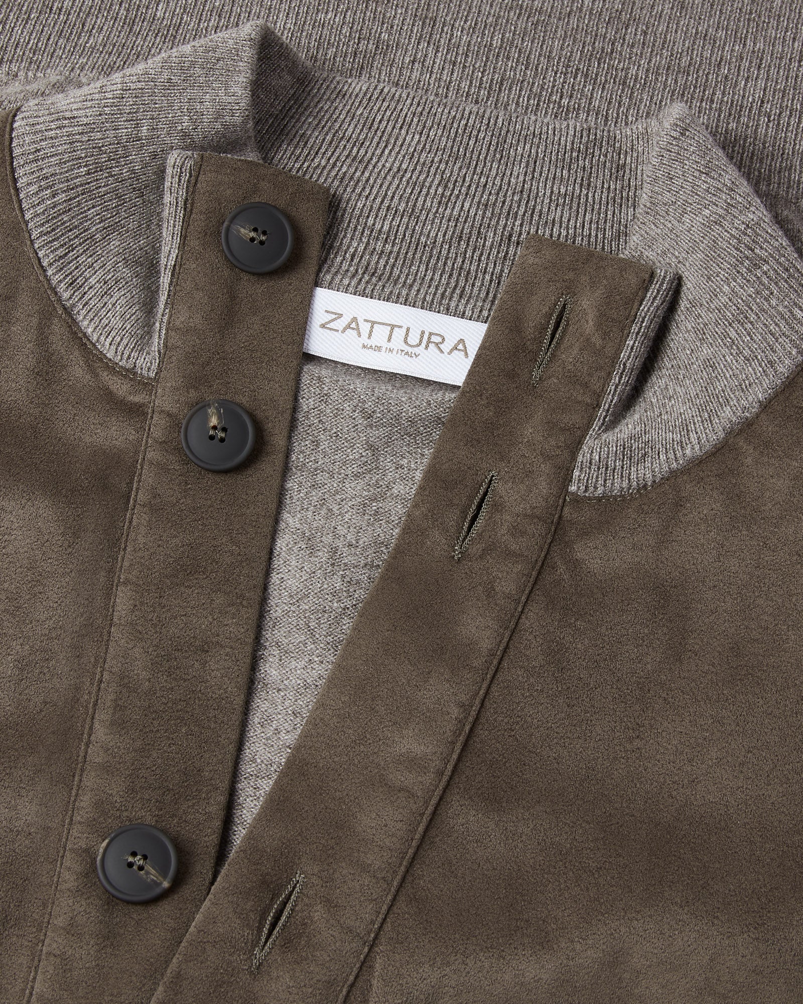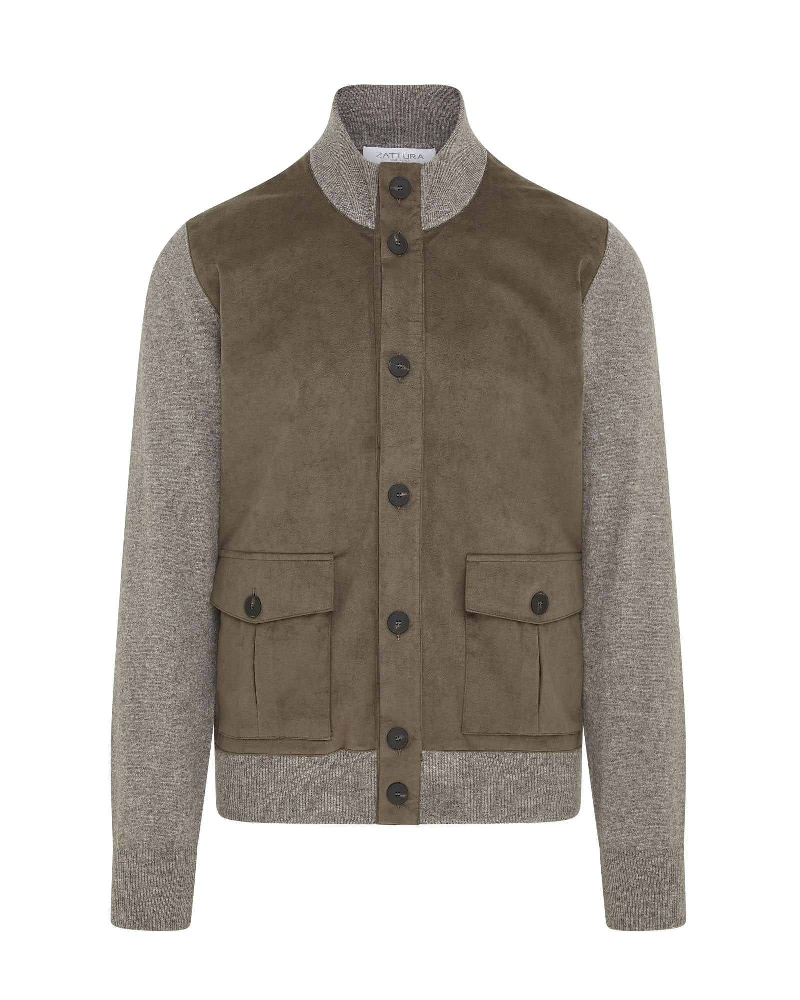 Zattura Button Alcantara & Knitted Bomber Jacket (Light Beige)