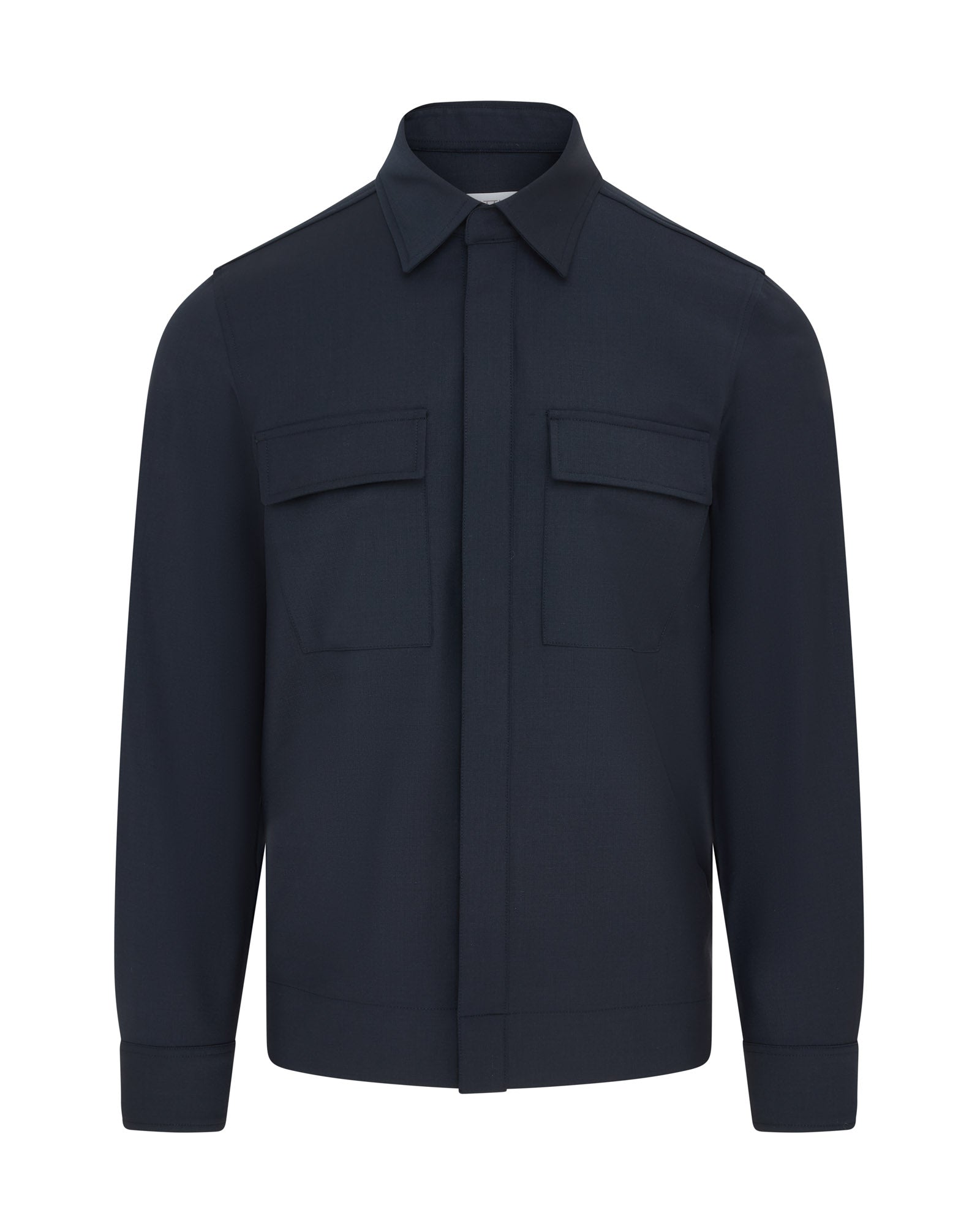 Zattura Buttoned Performance Wool Over Shirt (Navy)