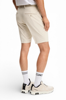 A refined mens piece, the J.Lindeberg Mitch Active Shorts in moonbeam blends technical function with a clean, contemporary profile.