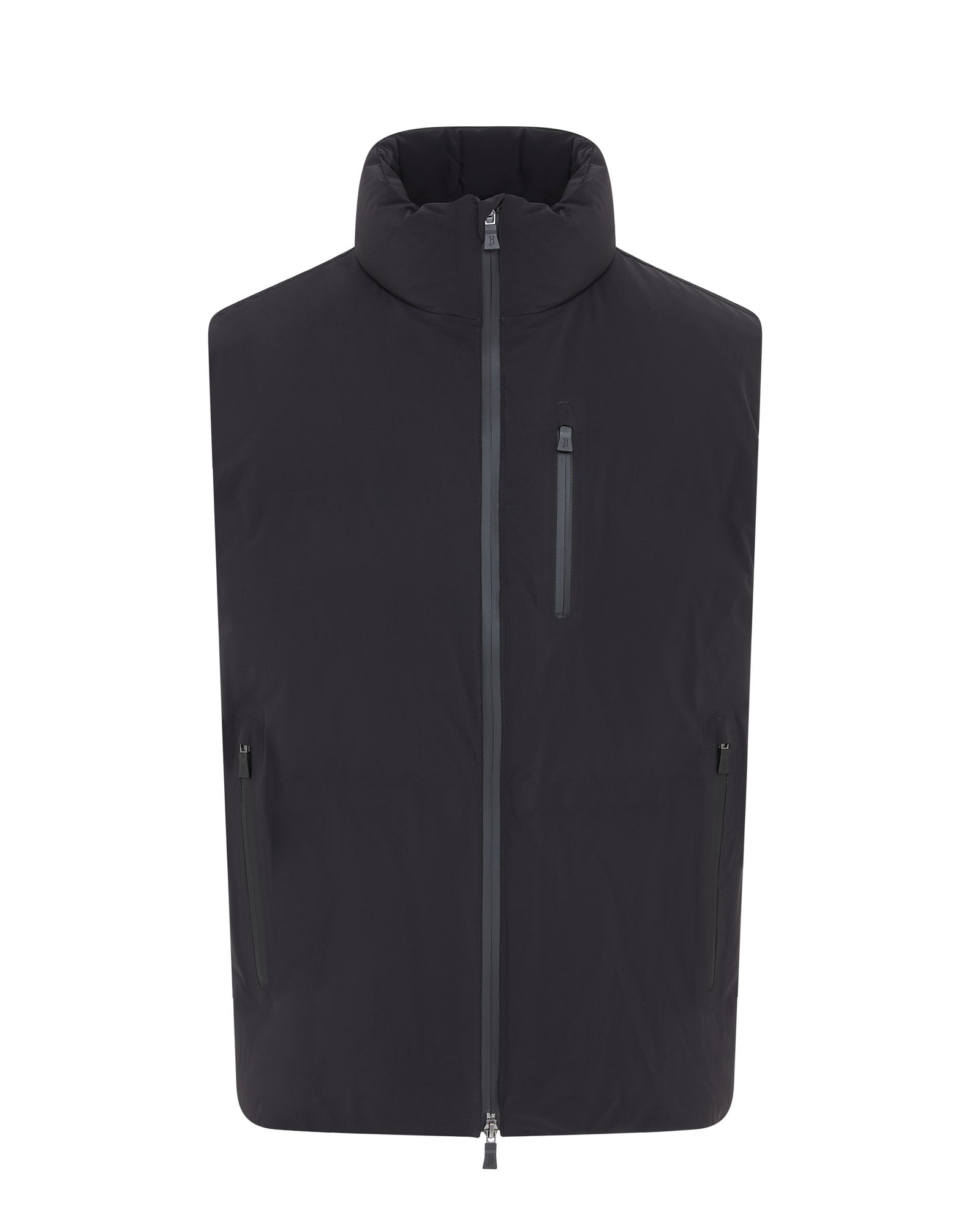 The Herno New Impact Waterproof Down Stretch Gilet in Black exemplifies refined Italian craftsmanship with a modern, minimalist design. Engineered for both style and function, this designer gilet features waterproof down insulation and stretch fabric, delivering lightweight warmth and enhanced mobility. Its clean lines and sleek silhouette make it a versatile piece for a polished, contemporary wardrobe.